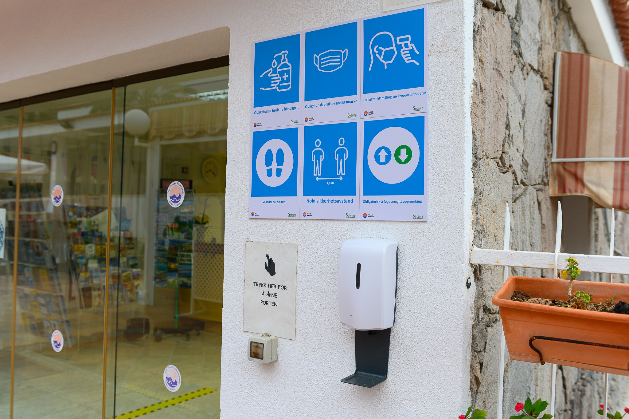 Scanner ved restaurantinngangen – som gjør det mulig å dobbeltsjekke våre kunders temperaturer.